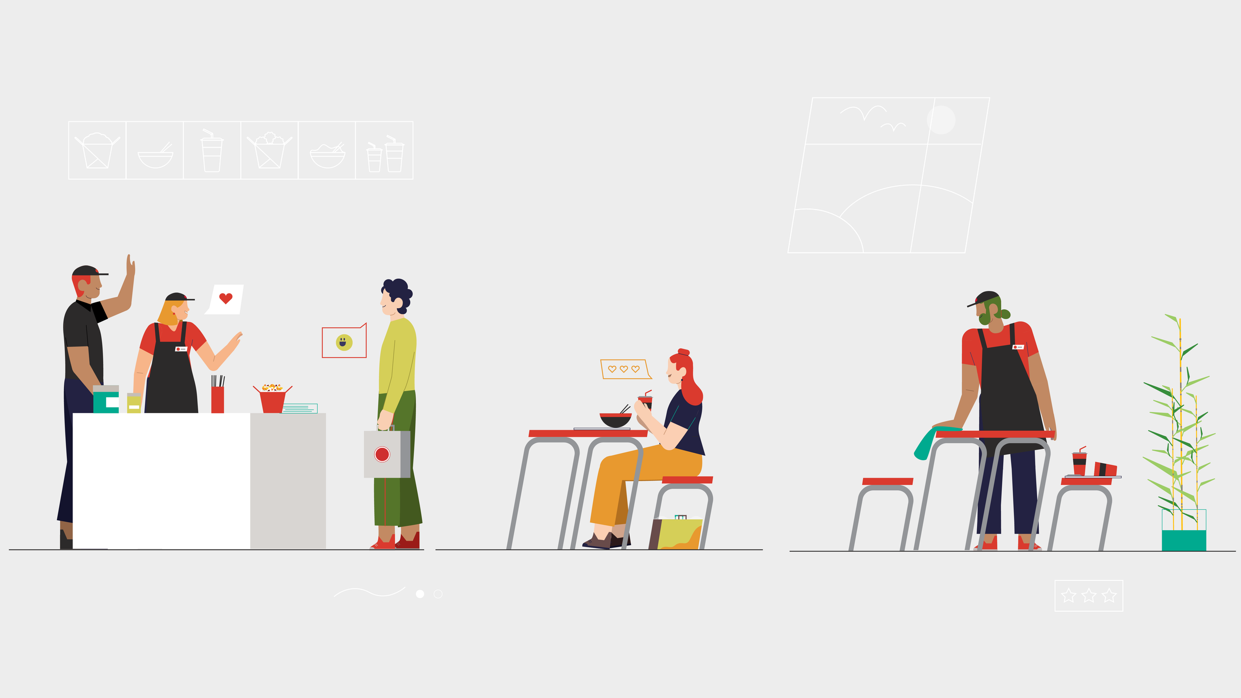 This wasn’t just about delivering a single video. It was about defining an entire visual world for a three-part internal onboarding series, set to unfold over three years. From style direction to character design, I crafted a bold, playful visual language that reflects Panda Express’s vibrant culture.